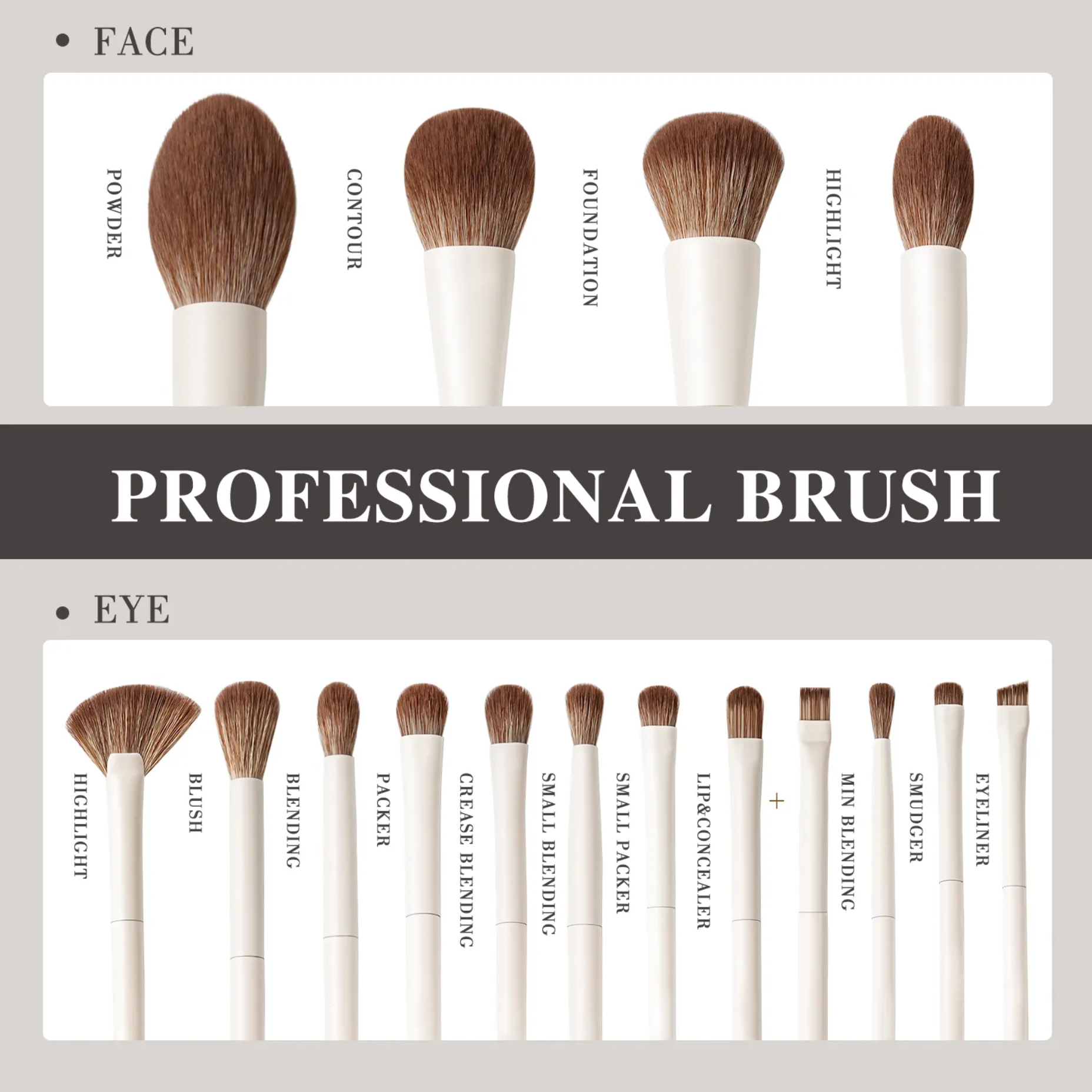 مجموعة فرش مكياج احترافية: تتضمن مجموعة المكياج الاحترافية هذه المكونة من 15 قطعة 5 قطع من فرش مكياج الوجه: فرشاة كريم الأساس وفرش البودرة وفرشاة كونتور وفرشاة تسليط الضوء و10 قطع من فرش العيون الدقيقة مثل فرش ظلال العيون وفرشاة الكونسيلر وفرشاة تحديد العيون وفرشاة الحواجب وفرش المزج